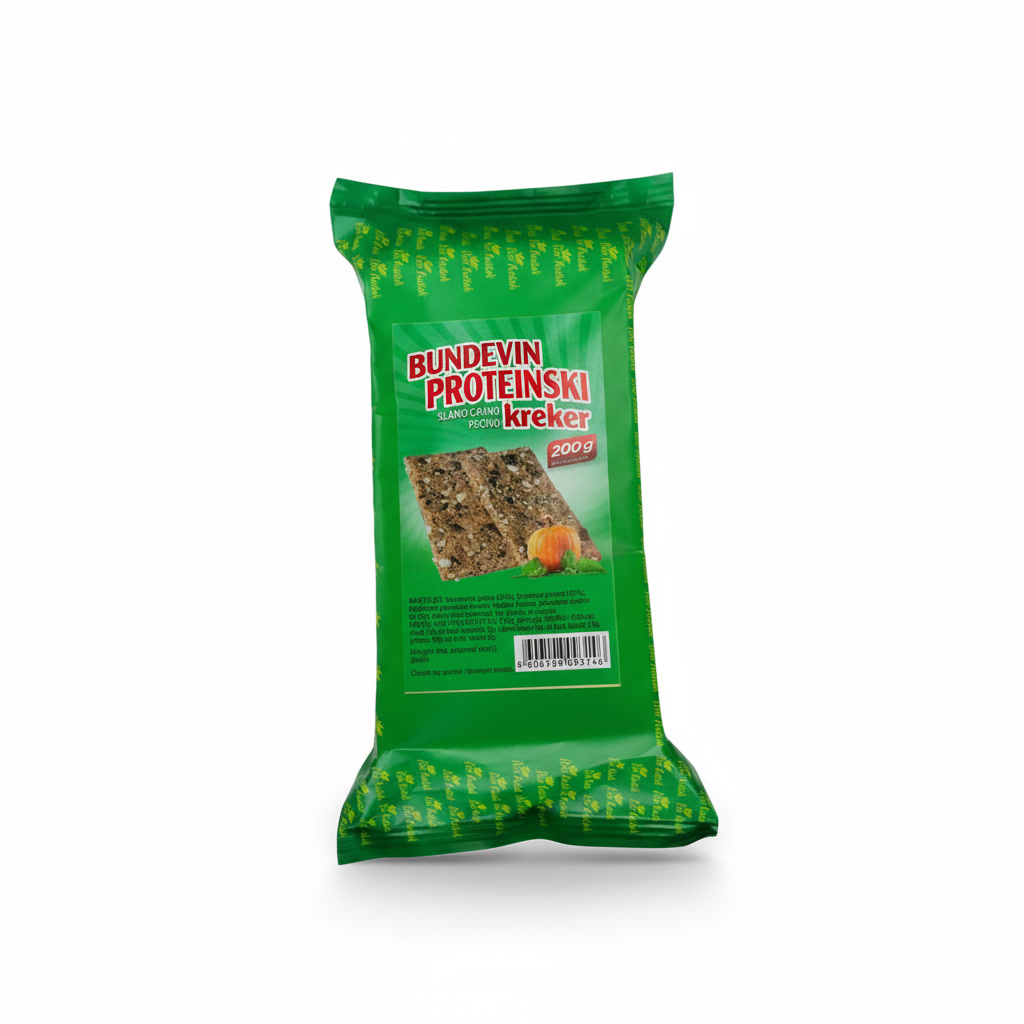 Integralni krekeri sa 20% bundevinog proteina i 20% lomljenog semena bundeve.